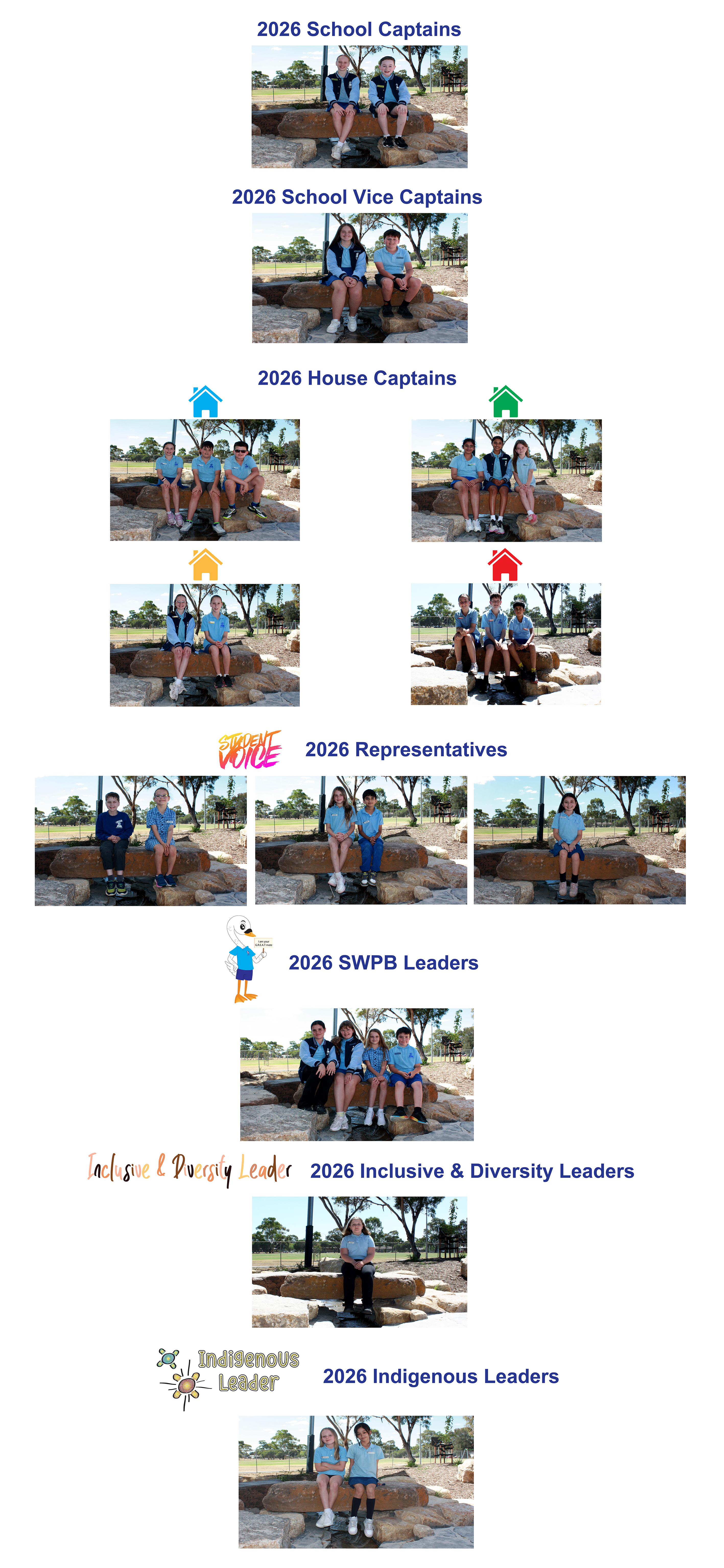 School and House Captains, Student Voice Representatives, SWPB Leaders, Inclusive & Diversity Leaders and Indigenous Leaders have a very important role in our school.